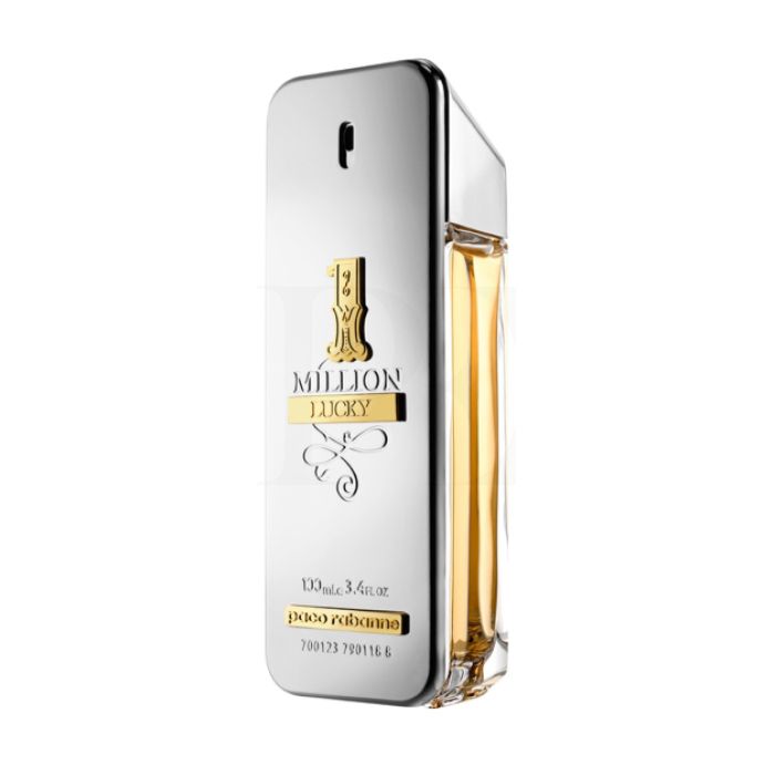 1 Million Lucky dares the extremes. Woody top notes pulse over addictive hazelnut. A shot of green plum. A fragrance with a beat. Stimulating the senses.